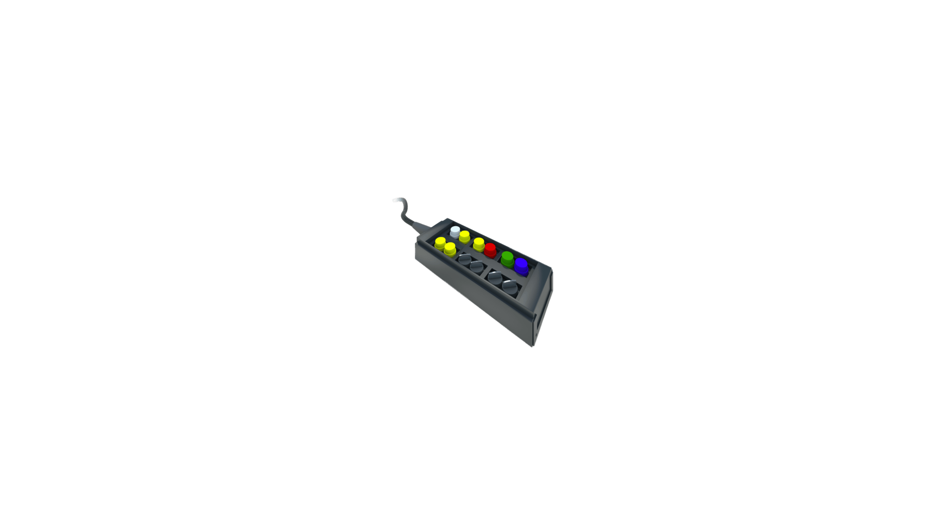 The design includes switches, buttons and lamps to operate the spreader. A spreader STOP button is included by default. Due to the size of the panel, there is a limitation of number of buttons that can be included.